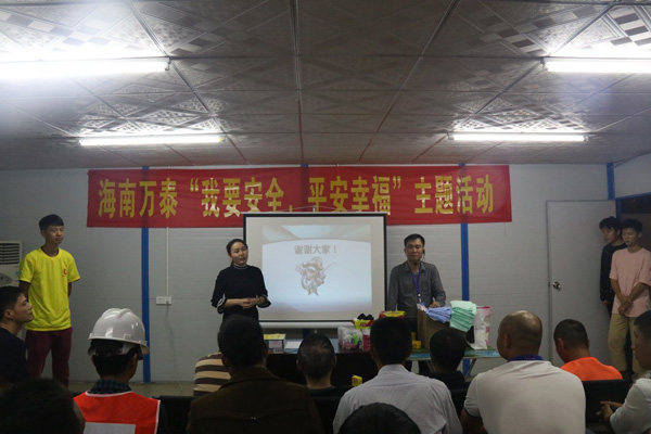 為了發(fā)揮互動作用,進(jìn)一步加深工人對安全知識的理解和掌握,會上,宣講人員邀請工人參與現(xiàn)場安全知識答題,并為參與答題的工人送上禮品,整場專題會氣氛活躍,效果顯著。