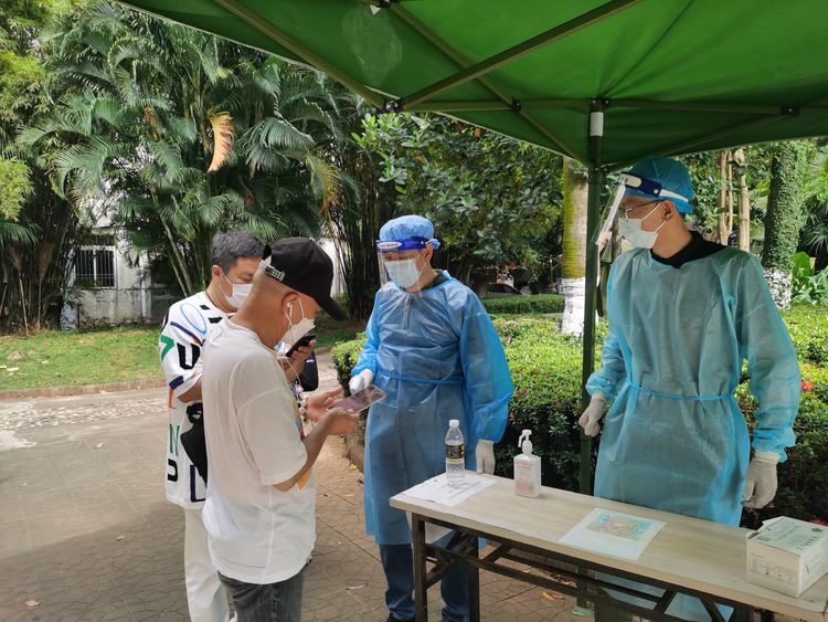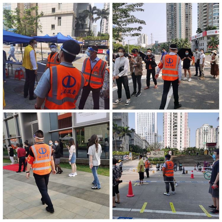 不忘初心,肩負(fù)擔(dān)當(dāng)。4月6日,龍華區(qū)政府進行了主城區(qū)全員核酸檢測工作,在公司常務(wù)副總顏利的帶領(lǐng)下,公司員工分批次,有秩序, 有組織地奔赴金貿(mào)街道轄區(qū)內(nèi)的置地花園、電力村、海口灣、百方廣場等區(qū)域核酸檢測點,協(xié)助開展核酸檢測工作,做好現(xiàn)場秩序維護。“請大家間隔1米排好隊”“請戴好口罩,提前打開健康碼”……從中午到晚上9時,海南萬泰公司的員工堅守崗位盡職盡責(zé),維護好核酸檢測人員隊伍秩序,耐心解答群眾的疑問,安撫焦急等待的心情,幫助群眾操作健康碼,引導(dǎo)老人、孕婦優(yōu)先檢測,充分彰顯了無私奉獻(xiàn)的志愿精神。