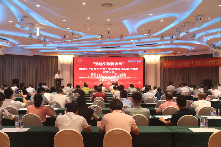 人間最美五月天,朝氣蓬勃沖云霄。為做好黨建引領(lǐng),促進企業(yè)發(fā)展,在第21個全國“安全生產(chǎn)月”來臨之際,圍繞“遵守安全生產(chǎn)法,當(dāng)好第一責(zé)任人”及“規(guī)范項目標準化管理”的活動主題,5月15日,海南萬泰集團在海口寶華酒店成功召開了黨建引領(lǐng)促發(fā)展—2022年“安全生產(chǎn)月”暨項目標準化管理宣貫大會。集團常務(wù)副總經(jīng)理顏利、副總經(jīng)理張宇等公司主要領(lǐng)導(dǎo)、部門負責(zé)人及各在建項目部項目經(jīng)理、資料員、安全員近130人參加了本次會議,海南省建設(shè)工程質(zhì)量安全檢測協(xié)會秘書長紀扣寶應(yīng)邀出席會議,本次會議由副總經(jīng)理吳坤芳主持。