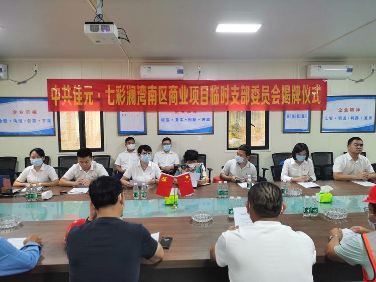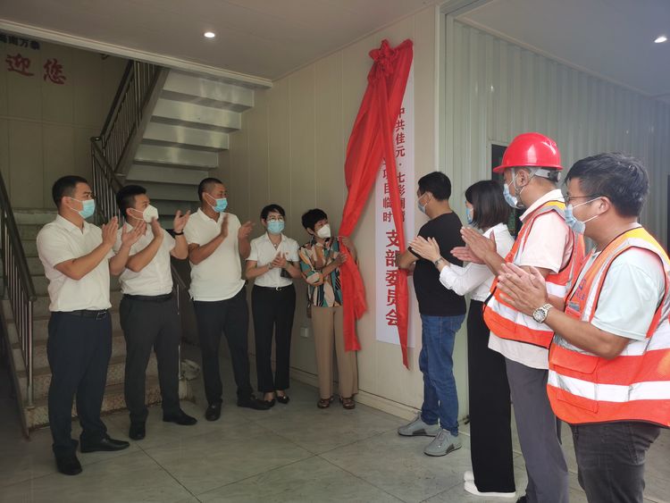 在主持人的指引下,大家移步為佳元·七彩瀾灣項(xiàng)目臨時(shí)黨支部進(jìn)行了揭牌,標(biāo)志著項(xiàng)目黨建工作邁上了新臺(tái)階,為項(xiàng)目部各項(xiàng)工作的開展奠定了組織基礎(chǔ)。