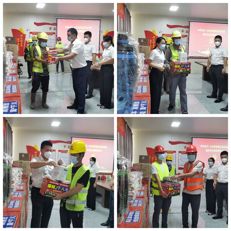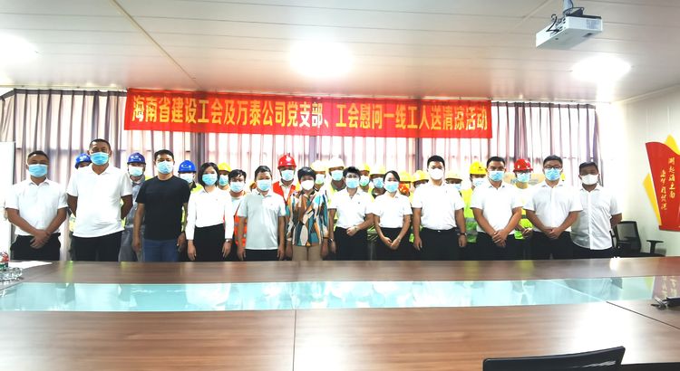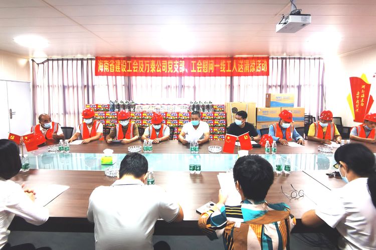 喜迎二十大,永遠(yuǎn)跟黨走。為進(jìn)一步提高黨組織在基層的影響力,增強(qiáng)黨組織在項(xiàng)目工地上的凝聚力,貫徹落實(shí)“項(xiàng)目建在哪,支部就設(shè)在哪”的理念,經(jīng)海南省住建行業(yè)黨委的批準(zhǔn),在黨的二十大召開前夕,萬(wàn)泰公司承建的佳元·七彩瀾灣項(xiàng)目臨時(shí)黨支部揭牌儀式暨為一線工人送“清涼”活動(dòng)在項(xiàng)目部現(xiàn)場(chǎng)圓滿舉辦。澄邁縣質(zhì)監(jiān)站黨支部書記、副站長(zhǎng)蔡芙蓉、王培科長(zhǎng)等一行,公司黨支部、工程部及項(xiàng)目有關(guān)人員參加了本次活動(dòng)。