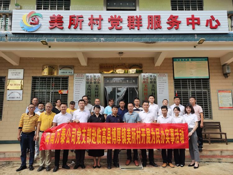 乘二十大東風(fēng),抓發(fā)展新機(jī)遇。為進(jìn)一步推動(dòng)互幫互助公益事業(yè)發(fā)展,切實(shí)開(kāi)展好“為民辦實(shí)事”活動(dòng),2022年10月26日,萬(wàn)泰公司黨支部聯(lián)合臨高縣質(zhì)監(jiān)站赴臨高縣博厚鎮(zhèn)美所村開(kāi)展“為民辦實(shí)事”活動(dòng)。臨高縣質(zhì)監(jiān)站有關(guān)領(lǐng)導(dǎo),博厚鎮(zhèn)駐村第一書(shū)記,美所村黨支部書(shū)記,萬(wàn)泰公司黨支部及有關(guān)人員參加了本次活動(dòng)。