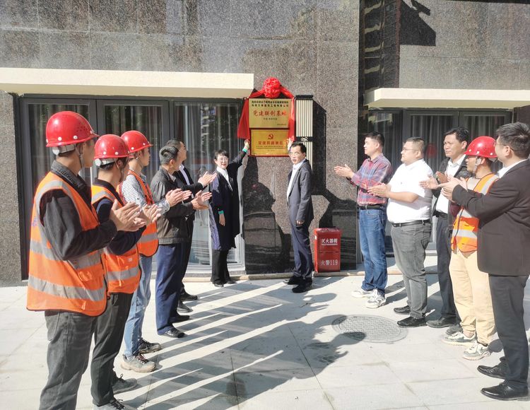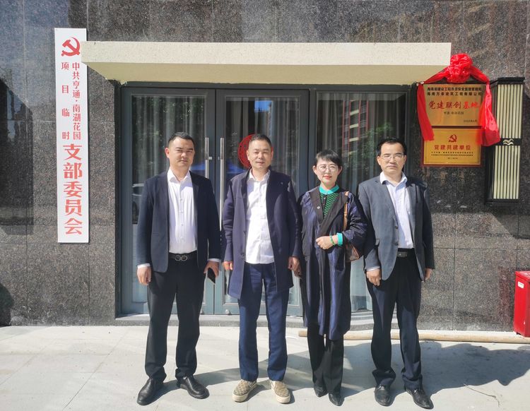 當日上午,海南萬泰公司黨支部、工程部,白沙亨通集團董事長周金華、亨通·南湖花園項目臨時黨支部書記何承中、項目總負責人劉普等有關(guān)人員共同為黨建聯(lián)建共創(chuàng)基地進行揭牌。