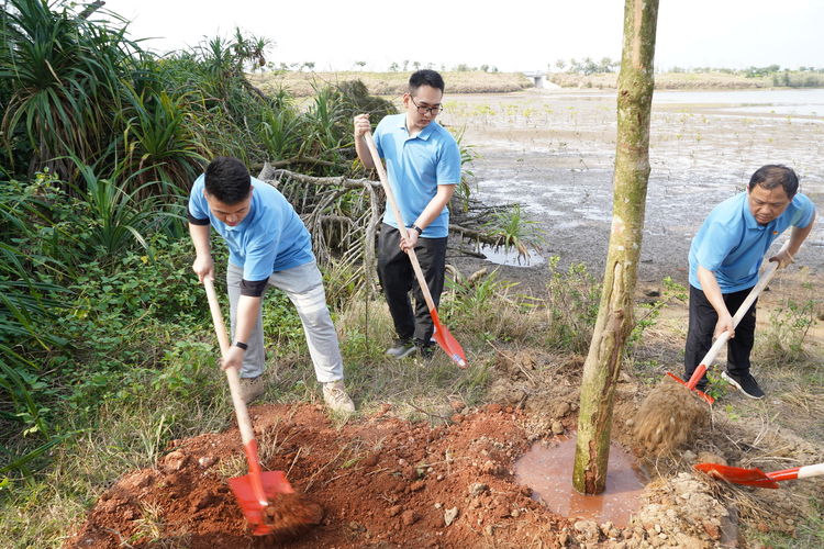 活動當(dāng)天,艷陽高照,晴空萬里,大家紛紛拿著鐵鍬,拎起水桶,以十足的干勁與熱情積極投入到植樹播種中,挖坑、放苗、扶正、填土、澆水,一氣呵成,全然不顧揮灑的汗水。在大家的分工合作下,一棵棵新栽苗木迎風(fēng)挺立,給初春的大地增添了盎然的生機(jī)和蓬勃的朝氣,形成了一道亮麗的風(fēng)景線。海南萬泰公司黨支部書記曹珊珊及部分黨員紛紛表示,將會把本次實(shí)踐活動的所學(xué)所感融入到今后工作與生活中,不斷提升自我,努力為建設(shè)美麗新海南不斷地添磚加瓦。