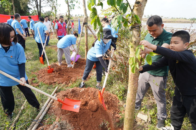為了貫徹落實(shí)黨的二十大關(guān)于“推動綠色發(fā)展,促進(jìn)人與自然和諧共生”的要求,共建優(yōu)美和諧海南,提升黨員的愛綠護(hù)綠意識,加強(qiáng)基層黨支部聯(lián)創(chuàng)共建,海南萬泰公司黨支部積極響應(yīng)上級黨委的號召,2023年3月12日,參加了由省住建廳機(jī)關(guān)黨委、行業(yè)黨委在江東新區(qū)邁雅河濕地公園組織開展的“植樹添綠,黨旗增輝”支部共建義務(wù)植樹活動,省廳相關(guān)處室和工會黨支部、省建設(shè)信息協(xié)會黨支部及相關(guān)企業(yè)支部約60余人參加了本次活動。