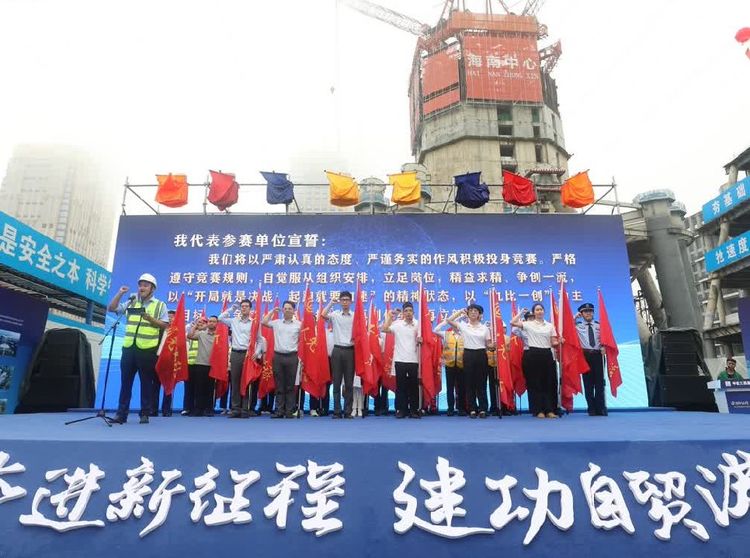 為充分發(fā)揮工人階級主力軍作用,積極組織公司職工參與企業(yè)發(fā)展事業(yè),為海南自貿(mào)港建設(shè)做貢獻,2023年3月30日,由海南省總工會、海南省住房和城鄉(xiāng)建設(shè)廳、海南省營商環(huán)境建設(shè)廳、海南省公安廳等單位聯(lián)合主辦,海南省農(nóng)林水利交通建設(shè)工會、海南省建設(shè)工會、中建三局集團有限公司承辦的“奮進新征程、建功自貿(mào)港”2023年海南省行業(yè)性勞動和技能競賽啟動儀式在海南中心項目工地全面啟動,省總工會主席陸志遠、省住建廳副廳長林詩輝等相關(guān)單位領(lǐng)導出席活動。