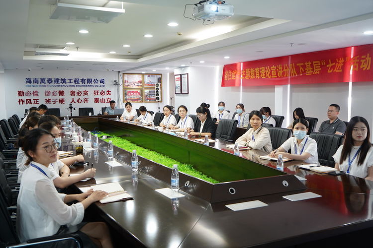 為深入學(xué)習(xí)黨的二十大精神,開展好學(xué)習(xí)貫徹習(xí)近平新時(shí)代中國(guó)特色社會(huì)主義思想主題教育,引導(dǎo)廣大黨員群眾深刻領(lǐng)悟“兩個(gè)確立”、增強(qiáng)“四個(gè)意識(shí)”、堅(jiān)定“四個(gè)自信”、做到“兩個(gè)維護(hù)”,推動(dòng)黨的二十大精神在基層走深走實(shí),2023年5月25日,海南省住房和城鄉(xiāng)建設(shè)廳人事處二級(jí)調(diào)研員、行業(yè)黨委專職副書記李述朝,黨建指導(dǎo)員陳小娜走進(jìn)海南萬(wàn)泰公司開展學(xué)習(xí)貫徹習(xí)近平新時(shí)代中國(guó)特色社會(huì)主義思想主題教育理論宣講“七進(jìn)”活動(dòng)。萬(wàn)泰公司黨員及員工近50人參加了本次宣講活動(dòng)。
