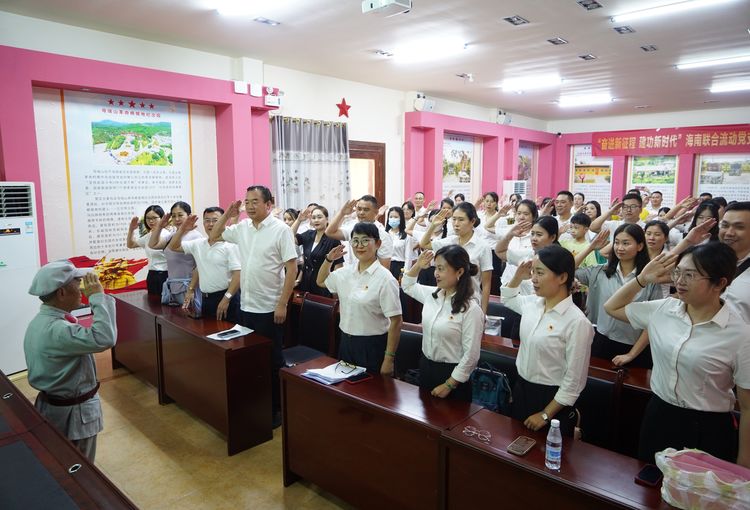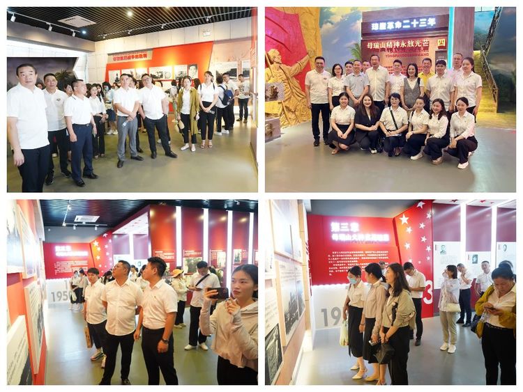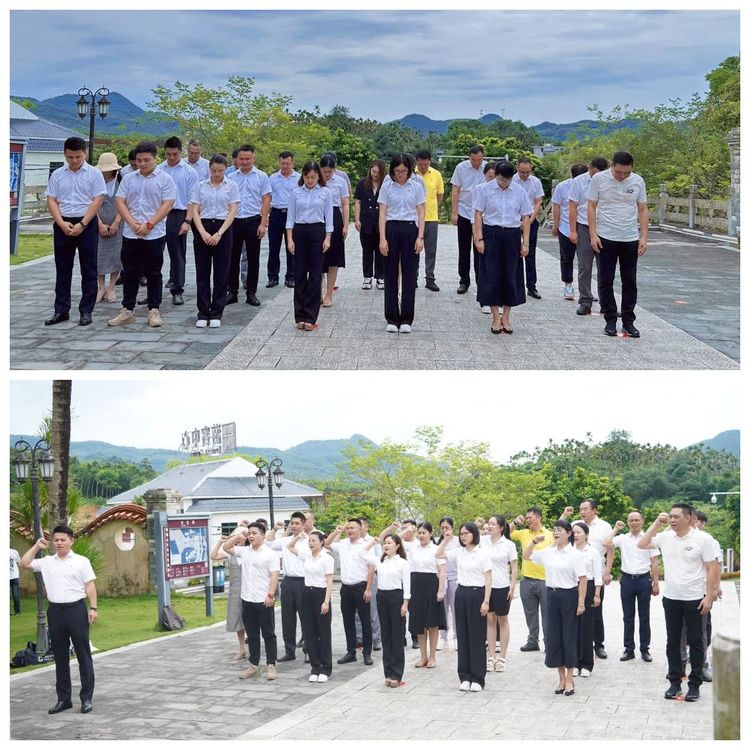 活動第一站來到了定安縣母瑞山革命根據(jù)地紀念園。大家首先參觀了革命歷史博物館,一張張革命的照片展現(xiàn)了母瑞山紅軍革命奮斗史,一件件無聲的遺物令人夢回曾經(jīng)革命時代。通過認真聆聽博物館講解員的娓娓道來,生動形象的講述,大家深入了解了母瑞山革命根據(jù)地的發(fā)展歷程,這個地方曾在瓊崖人民堅持武裝斗爭二十三年紅旗不倒光輝歷程中起到了舉足輕重的作用,凝結著“崇高理想、堅定信念,勇于獻身,相信群眾、依靠群眾,自力更生、艱苦奮斗”的母瑞山精神,對那段艱苦卓絕的歲月有了新的認識和領悟。隨后,黨員們懷著對革命烈士崇敬的心情,在王文明、馮白駒的銅像前為革命先輩默哀一分鐘和三鞠躬,并重溫了入黨誓詞。