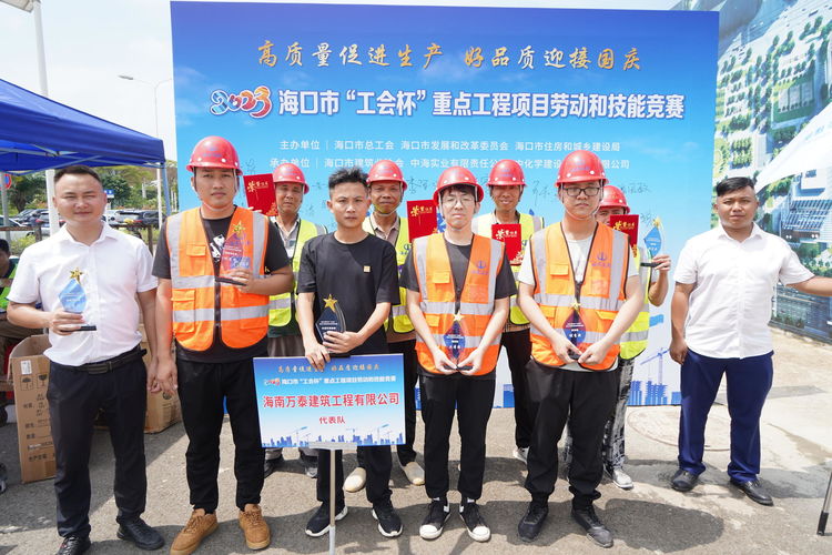 為進(jìn)一步弘揚(yáng)勞模工匠精神和發(fā)揮職工先進(jìn)示范帶頭作用,推動(dòng)企業(yè)高質(zhì)量發(fā)展 ,9月28日上午,由??谑锌偣?huì)、??谑邪l(fā)展改革委員會(huì)、??谑凶》亢统青l(xiāng)建設(shè)局主辦,海口市建筑業(yè)協(xié)會(huì)、中海實(shí)業(yè)有限責(zé)任公司、中化學(xué)建設(shè)(海南)有限公司承辦的2023海口市勞動(dòng)技能競(jìng)賽-建筑行業(yè)技能比賽,在由中化學(xué)建設(shè)(海南)有限公司承建的中國(guó)海油深海能源開(kāi)發(fā)總指揮部基地項(xiàng)目01地塊項(xiàng)目部隆重舉行。來(lái)自海南萬(wàn)泰建筑工程有限公司、中化學(xué)建設(shè)(海南)有限公司、中國(guó)建筑第五工程局有限公司等9家海南省建筑業(yè)企業(yè),共計(jì)110名參賽選手同臺(tái)競(jìng)技,互相角逐,賽出水平,展現(xiàn)風(fēng)采。海南萬(wàn)泰公司總經(jīng)理顏利、黨支部書(shū)記曹珊珊及總經(jīng)辦、工程部、綜合部有關(guān)人員參加本次活動(dòng)。