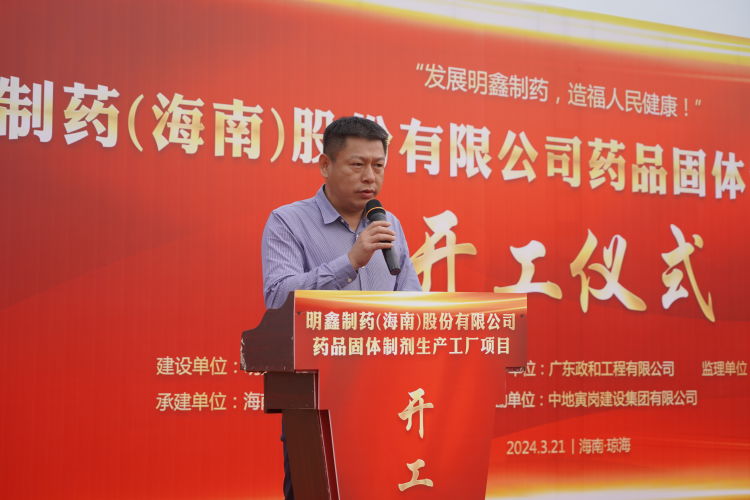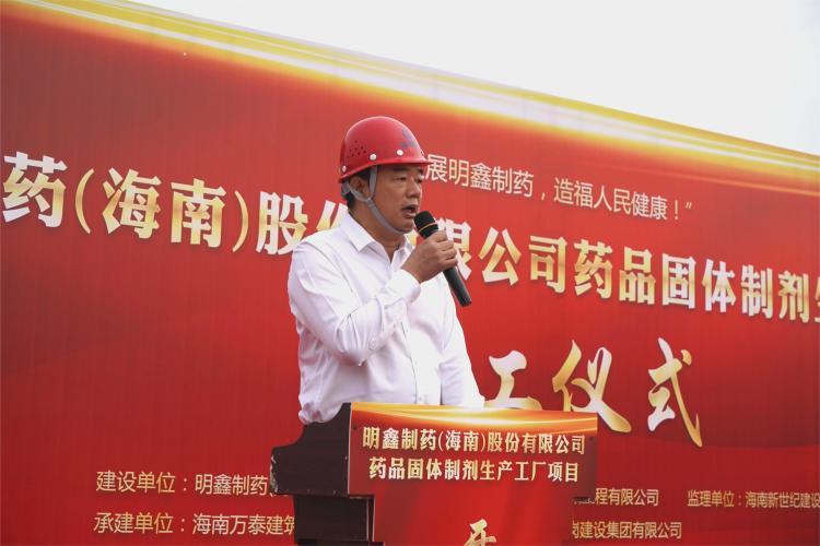 明鑫制藥海南公司董事長(zhǎng)金佳樂(lè)在致辭中表示該項(xiàng)目建成后將進(jìn)一步提升瓊海市醫(yī)藥服務(wù)水平,希望各參建單位都能夠齊心協(xié)力推進(jìn)項(xiàng)目建設(shè),高標(biāo)準(zhǔn)、高質(zhì)量完成既定施工任務(wù),助力海南自貿(mào)港發(fā)展。