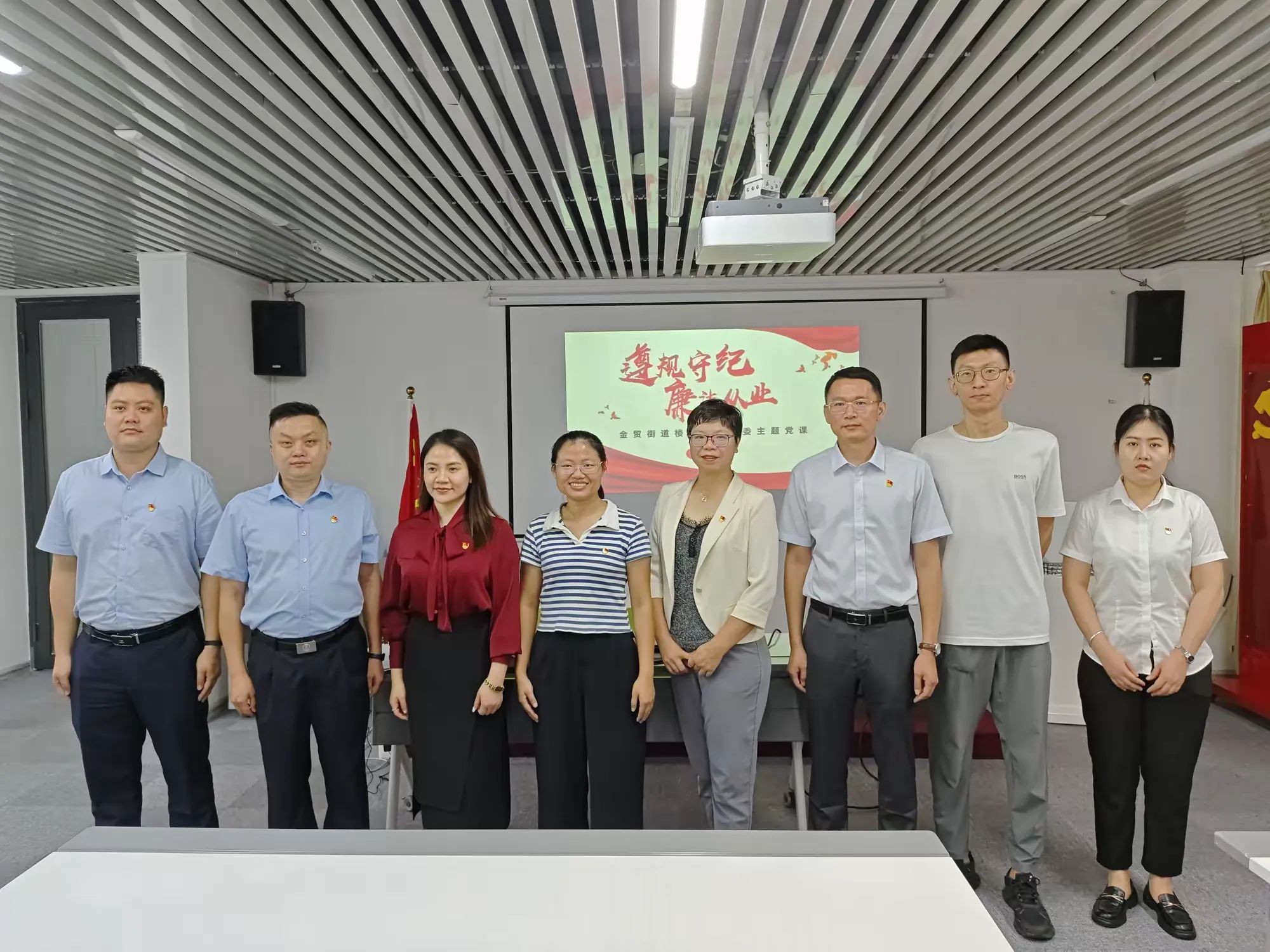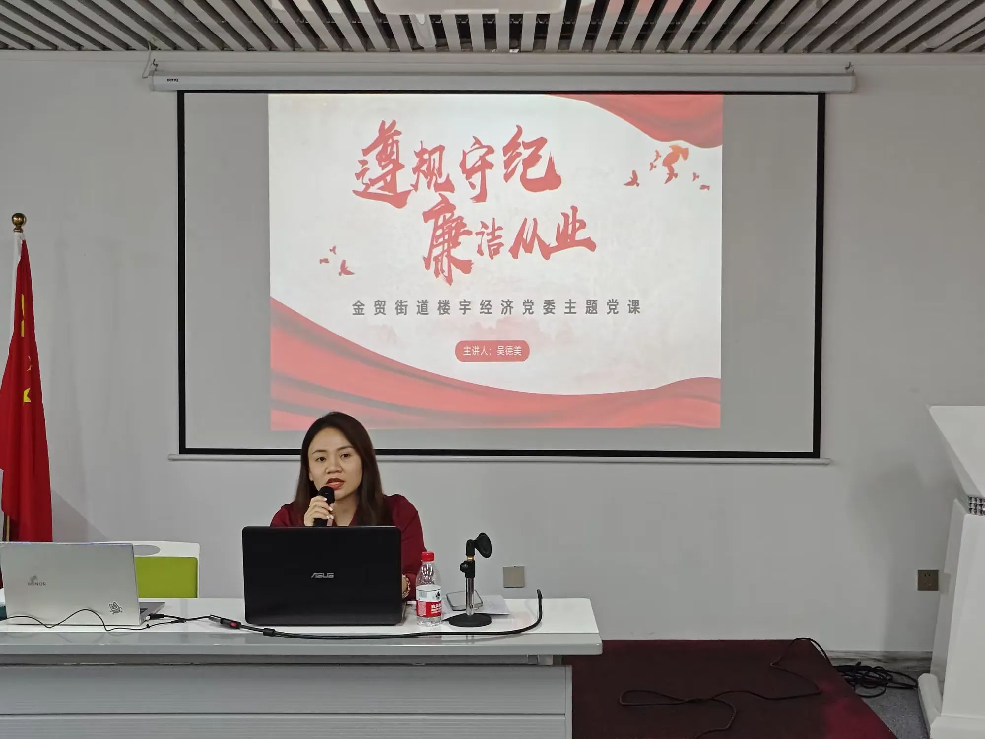 活動(dòng)中,金貿(mào)街道樓宇經(jīng)濟(jì)黨委書(shū)記吳德美以“遵規(guī)守紀(jì) 廉潔從業(yè)”為主題為大家講授了一堂深刻的黨課,從廉潔從業(yè)的有關(guān)規(guī)定、意義、企業(yè)關(guān)鍵崗位廉潔風(fēng)險(xiǎn)點(diǎn)及防控措施、警示案例等多方面強(qiáng)調(diào)了廉潔從業(yè)的重要性。