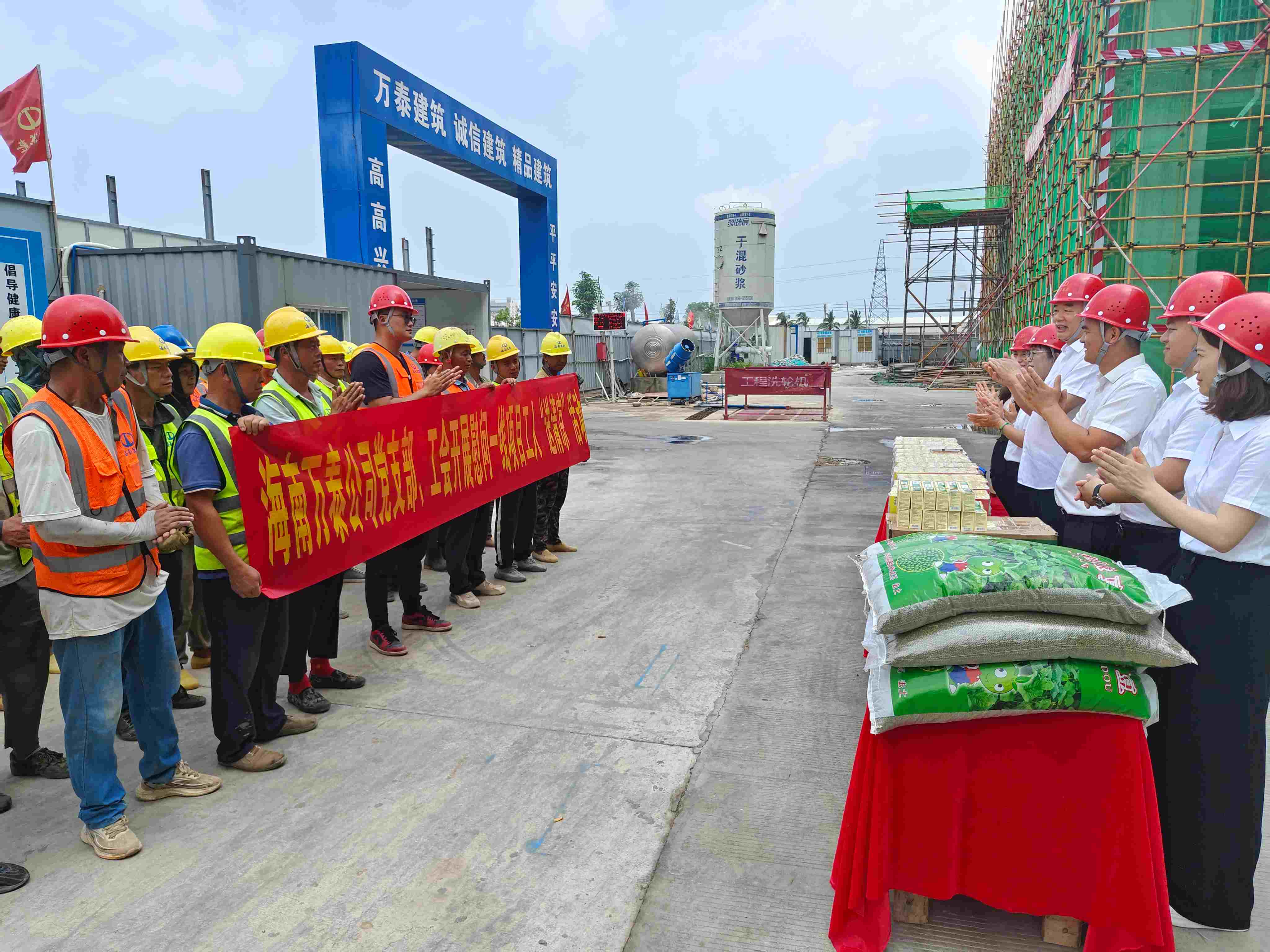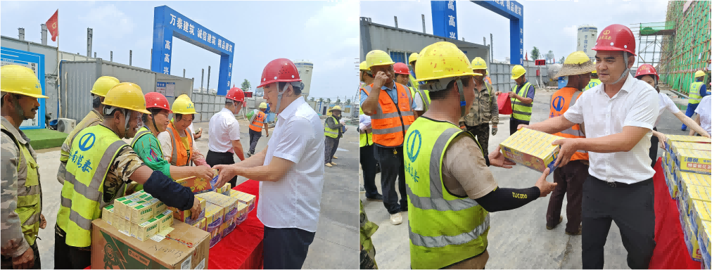 炎炎夏日送清涼,點點滴滴暖人心。4月27日、30日,為表達對堅守在工作崗位的項目一線工友的關(guān)懷與敬意,在五一國際勞動節(jié)即將到來之際,海南萬泰公司總經(jīng)理顏利帶隊赴??诮瓥|新區(qū)國際消費精品產(chǎn)業(yè)港等項目現(xiàn)場,開展了“送清涼,暖人心”慰問活動,為廣大一線工友們送去節(jié)日祝福和清涼物資。公司黨支部、工會及相關(guān)部門負責(zé)人參加了本次活動。