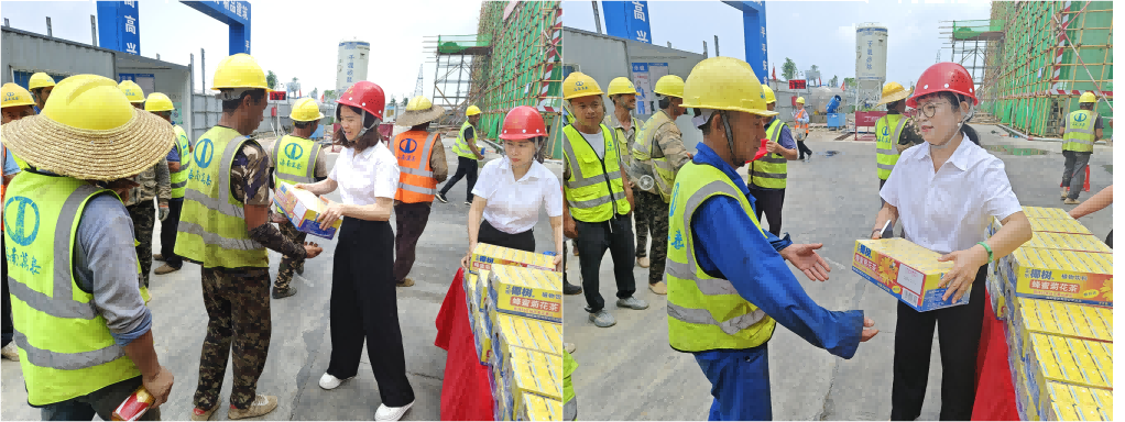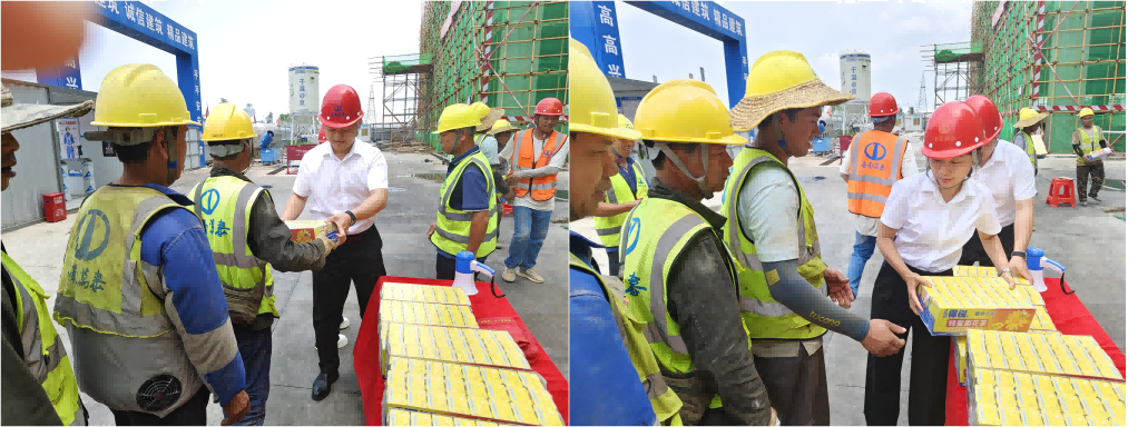 在活動中,顏利首選了解了項目的建設(shè)情況以及工人作業(yè)安全保障工作,叮囑工友們要注意提高防范意識,勞逸結(jié)合,做好夏日防暑工作,保護好自身安全,以更飽滿的熱情和昂揚的斗志,投入到工作中去,為項目早日竣工貢獻力量。隨后,大家共同為工友們送去了下火茶、綠豆、消暑藥品等清涼物資以及節(jié)日祝福。