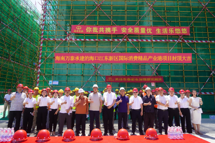 5月19日,??诮瓥|新區(qū)國(guó)際消費(fèi)精品產(chǎn)業(yè)港項(xiàng)目主體結(jié)構(gòu)封頂儀式在項(xiàng)目現(xiàn)場(chǎng)順利舉辦。海南萬(wàn)泰公司總經(jīng)理顏利、有關(guān)部門負(fù)責(zé)人以及項(xiàng)目部人員,項(xiàng)目各參建單位代表出席了封頂儀式。
