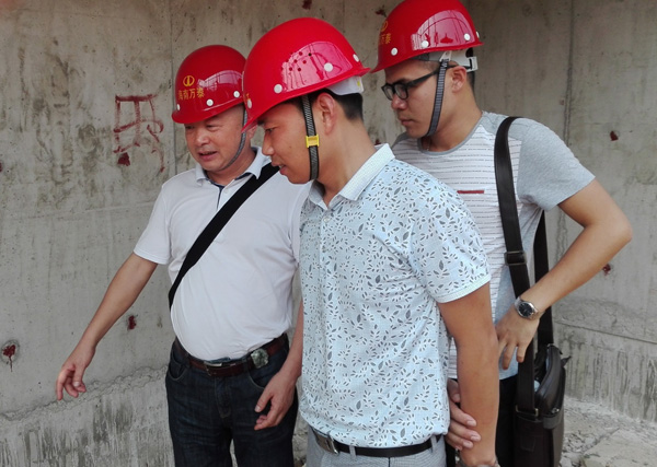 4月14日下午,萬泰公司總工程師鄒進安、工程部主任秦啟武帶領(lǐng)工程部、總工辦、辦公室部分員工到公司瓊海在建項目信達?銀海御湖工地現(xiàn)場檢查工作。項目部管理人員邱總、程總等陪同參加了本次季度質(zhì)量安全檢查。